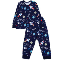 Трикотажная пижама из натурального хлопка. Джемпер с длинными втачными рукавами с принтом. У брюк в комплекте мягкий, эластичный пояс на резинке. Оригинальная набивка выполнена из стойких, гипоаллергенных текстильных красителей. Комплект сохраняет цвет и форму после многократных стирок. Все трикотажные полотна производятся в соответсвии с нормами Швейцарского сертификата ЭкоТекс.