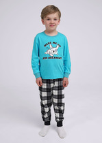 Трикотажная пижама с начёсом из натурального хлопка. Джемпер с длинными спущенными рукавами и брюки с эластичной резинкой в поясе. Мягкие манжеты на рукавах и по низу брюк. Оригинальные набивка и принт выполнены из стойких гипоаллергенных текстильных гипоаллергенных красителей. Изделие сохраняет цвет и форму после многократных стирок. Все трикотажные полотна производятся в соответсвии с нормами швейцарского сертификата ЭкоТекс.