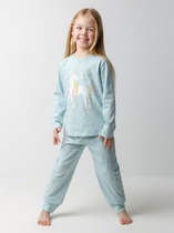 Трикотажная пижама из натурального хлопка. Джемпер с длинными рукавами с принтом. У брюк эластичный пояс на резинке. Оригинальные принт и набивка выполнены из стойких, гипоаллергенных текстильных красителей. Пижама сохраняет цвет и форму после многократных стирок. Все трикотажные полотна производятся в соответсвии с нормами Швейцарского сертификата ЭкоТекс.