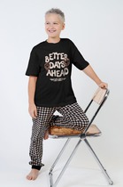 Пижама для девочки из натурального хлопка. Джемпер с длинными втачными рукавами и брюки с эластичной резинкой в поясе. Мягкие манжеты по низу брюк сделаны из материала в рубчик. Оригинальная набивка и принт выполнены из стойких текстильных гипоаллергенных красителей. Изделие сохраняет цвет и форму после многократных стирок. Все трикотажные полотна производятся в соответствии с нормами швейцарского сертификата ЭкоТекс.