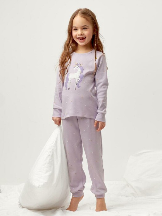 Трикотажная пижама из натурального хлопка. Джемпер с длинными втачными рукавами и брюки с эластичной резинкой в поясе. Мягкие манжеты на рукавах и по низу брюк. Оригинальная набивка и принт выполнены из стойких текстильных гипоаллергенных красителей. Изделие сохраняет цвет и форму после многократных стирок. Все трикотажные полотна производятся в соответсвии с нормами швейцарского сертификата ЭкоТекс.