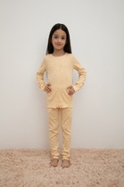 Трикотажная пижама в рубчик из натурального хлопка. Джемпер с длинными втачными рукавами и лосины с эластичной резинкой в поясе. Оригинальная набивка выполнена из стойких текстильных гипоаллергенных красителей. Изделие сохраняет цвет и форму после многократных стирок. Все трикотажные полотна производятся в соответсвии с нормами швейцарского сертификата ЭкоТекс.