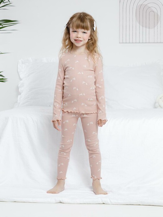 Трикотажная пижама в рубчик из натурального хлопка. Джемпер с длинными втачными рукавами и лосины с эластичной резинкой в поясе. Оригинальная набивка выполнена из стойких текстильных гипоаллергенных красителей. Изделие сохраняет цвет и форму после многократных стирок. Все трикотажные полотна производятся в соответствии с нормами швейцарского сертификата ЭкоТекс.