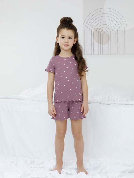 Трикотажная пижама в рубчик из натурального хлопка. Футболка с короткими втачными рукавами и шорты с эластичной резинкой в поясе. Оригинальная набивка выполнена из стойких текстильных гипоаллергенных красителей. Изделие сохраняет цвет и форму после многократных стирок. Все трикотажные полотна производятся в соответствии с нормами швейцарского сертификата ЭкоТекс.