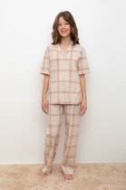 Трикотажная пижама из натурального хлопка. Футболка с короткими втачными рукавами и прямые брюки с эластичной резинкой в поясе. Оригинальные набивка и принт выполнены из стойких гипоаллергенных текстильных красителей. Изделие сохраняет цвет и форму после многократных стирок. Все трикотажные полотна производятся в соответсвии с нормами швейцарского сертификата ЭкоТекс.