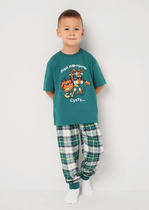Трикотажная пижама из натурального хлопка. Джемпер с длинными втачными рукавами и прямые брюки с эластичной резинкой в поясе. Оригинальные набивка и принт выполнены из стойких гипоаллергенных текстильных гипоаллергенных красителей. Изделие сохраняет цвет и форму после многократных стирок. Все трикотажные полотна производятся в соответсвии с нормами швейцарского сертификата ЭкоТекс.