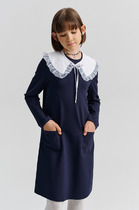 Платье школьное для девочки. Произведено из мягкого трикотажного футера трёхнитки.. В составе 80% натурального хлопка и 20% полиэстера, при этом полиэстер ввязан внутрь по особой технологии и не соприкасается с кожей.