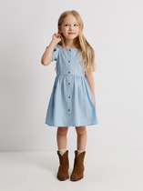 Легкое нарядное платье для девочки из высококачественного трикотажа, верхний слой - из сетки. Застёгивается на спинке с помощью кнопок. Оригинальная набивка выполнена из стойких текстильных гипоаллергенных красителей. Изделие сохраняет цвет и форму после многократных стирок.