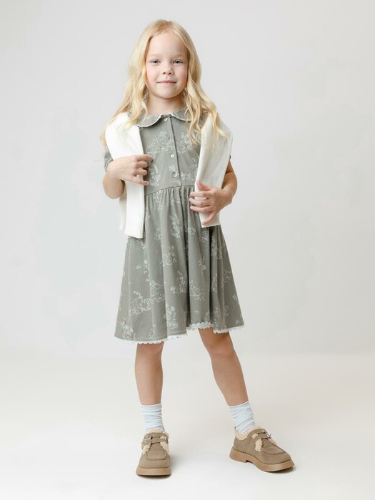 Платье для девочки с короткими рукавами из высококачественного гладкого трикотажа. Для удобства одевания платье застёгивается на пуговицы спереди. Воротник и низ изделия украшены кружевом. Платье сохраняет форму и стойкий цвет после многочисленных стирок и идеально подходит на каждый день. Все трикотажные полотна производятся в соответствии с нормами швейцарского сертификата ЭкоТекс.