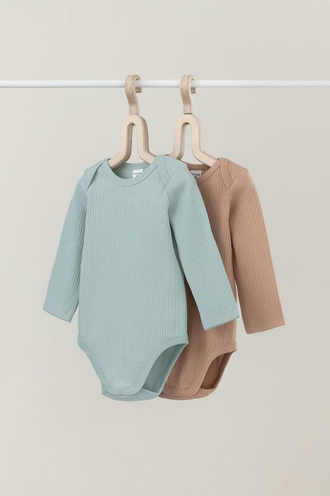 Боди для новорождённых из мягкого эластичного трикотажа, произведённого из натурального хлопка. В упаковке 2 штуки. Застёгиваются на кнопки по низу изделий. Все трикотажные полотна производятся в соответствии с нормами Швейцарского сертификата ЭкоТекс.