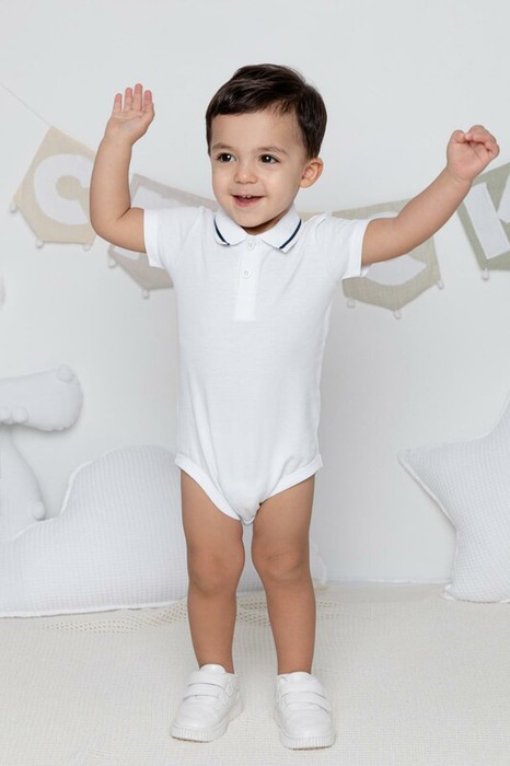 Боди для мальчика из трикотажного полотна пике. Вязаный воротник. Удобная застежка спереди.