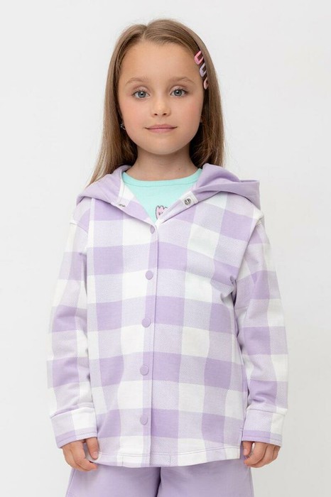 Crockid рубашка для дев КР 302698-1/пастельно-лиловый,клетка виши к541