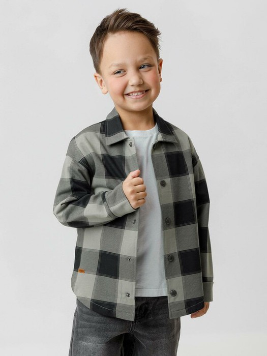 Свободная трикотажная рубашка для мальчика из мягкого петельчатого футера. Застёгивается на кнопки. Модель с закругленным низом и спущенным плечом. Рисунок в клетку выполнен из стойких текстильных гипоаллергенных красителей. Изделие сохраняет цвет и форму после многократных стирок. Все трикотажные полотна производятся в соответствии с нормами швейцарского сертификата ЭкоТекс.