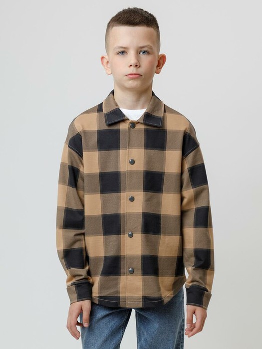 Свободная трикотажная рубашка для мальчика из мягкого петельчатого футера. Застёгивается на кнопки. Модель с закругленным низом и спущенным плечом. Рисунок в клетку выполнен из стойких текстильных гипоаллергенных красителей. Изделие сохраняет цвет и форму после многократных стирок. Все трикотажные полотна производятся в соответствии с нормами швейцарского сертификата ЭкоТекс.