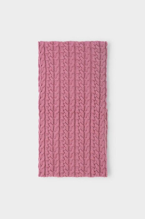 Однотонный снуд из полушерстяной пряжи для девочки, украшен вывязанными косами.