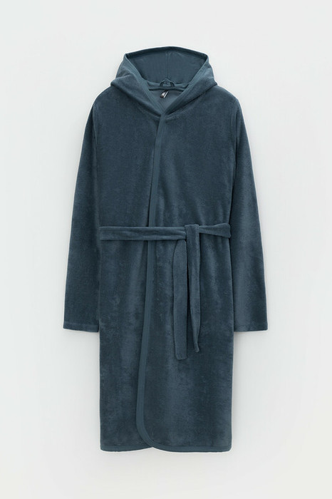 Тёплый махровый халат без начёса для подростков из натурального хлопка. У халата длинные втачные рукава. Пояс продет в шлёвки. По бокам карманы. Все трикотажные полотна производятся в соответствии с нормами Швейцарского сертификата ЭкоТекс.