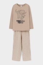 Трикотажный пижамный комплект из натурального хлопка. У джемпера длинные втачные рукава. Брюки с удобным поясом на резинке и утягивающим плетеным шнуром. Оригинальная набивка выполнена из стойких, гипоаллергенных текстильных красителей. Все трикотажные полотна производятся в соответствии с нормами Швейцарского сертификата ЭкоТекс.