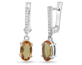 Серьги-пусеты из золочёного серебра с натуральными топазами и фианитами 925 проб