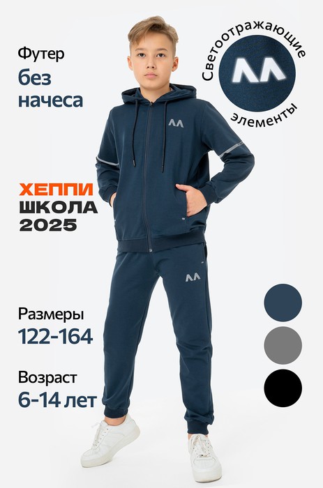 Демисезонный костюм цвета индиго станет отличным вариантом для прогулок, тренировок и активного отдыха. Подростковый костюм идеален для физкультуры в школе.