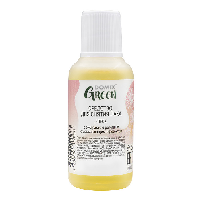 Совместные покупки Каменск-Уральский Косметика и парфюмерия Прочее — Domix Green Блеск 30мл пл Средство д/сн.лака с экстр.ромашки с ухажив.эффектом