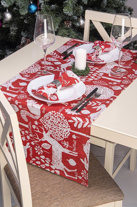 В линейке Happyfox Home представлены кухонные дорожки в разных цветовых решениях. Новогодняя дорожка отлично сочетается с другим текстилем для дома: кухонными салфетками и полотенцами из рогожки.