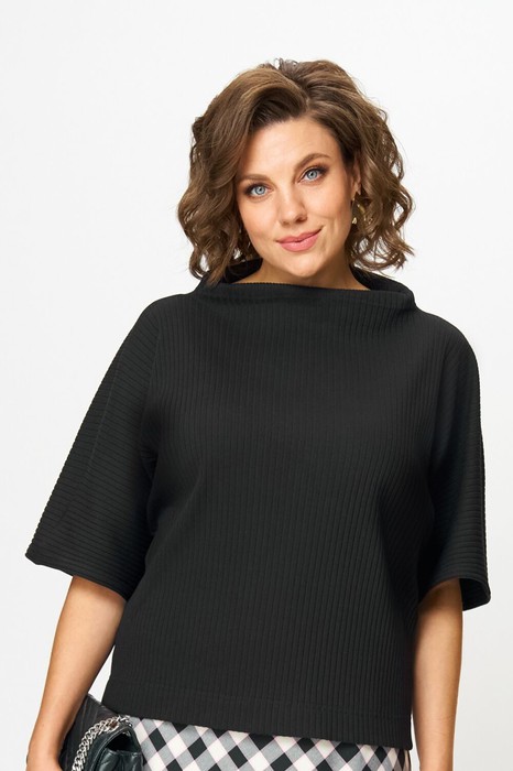 Представляем вашему вниманию стильныю и удобную блузку, который станет настоящим маст-хэвом в вашем гардеробе. Классический дизайн в стиле олд мани  создает атмосферу расслабленности и уюта, что особенно приятно в прохладные осенние и зимние дни. Эта блузка станет вашим верным спутником в любой ситуации, добавляя нотки элегантности и шарма в вашу повседневную жизнь. Отражает роскошь, придает элегантность и изысканность, будет великолепно смотреться на любой фигуре и привлечет к вам внимание окружающих. Блузка  женская  ,прямого силуэта,  из трикотажного полотна лапша, со спущенным плечом. Рукав "летучая мышь", 3/4 длины. Горловина цельнокроенная в виде стойки.   Блузка будет легко сочитаться с вещеми из вашего гардероба. Длина блузки(по спинке): (50-60)-65 см. Длина рукава от головины: (50-60) -50 см.
