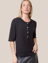 Джемпер из хлопкового трикотажа "вязка" на мягкой стабилизирующей основе, свободного силуэта, с круглой горловиной. Рукав длинный, линия плеча спущена. На переде аппликация с авторским принтом. По низу изделия кулиса со шнуром.