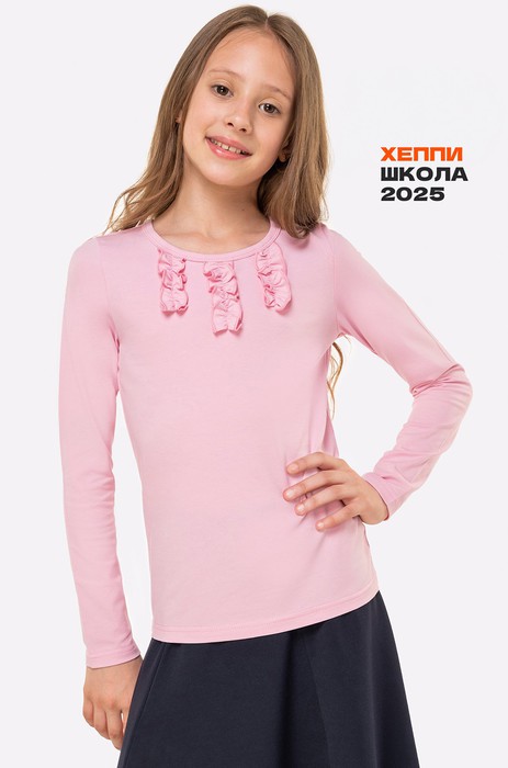 Детский лонгслив из легкого трикотажа станет идеальным дополнением к школьной форме для девочек и девочек-подростков. Аккуратные рюши, длинный рукав и базовый розовый цвет – важные детали, которые делают лонг для детей красивым и опрятным.