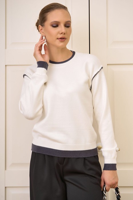 Мягкий, стильный и невероятно универсальный — джемпер «Кейт» станет вашим любимым элементом гардероба этой осени. Он создаёт аккуратный, женственный силуэт, дарит комфорт весь день и легко вписывается в любой образ — от повседневного до офисного.