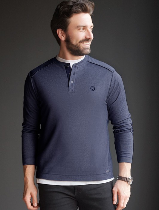 Совместные покупки Каменск-Уральский Мужская одежда Футболки — Джемпер хенли из полотна пике с меланжевым плетением с эластаном