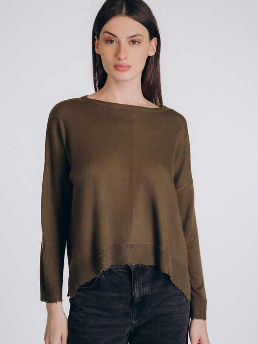 Женская кофта бренда Indefini выполнена в приглушённом оливковом цвете из мягкой смесовой ткани с высоким содержанием полиэстера, акрила, нейлона и шерсти.