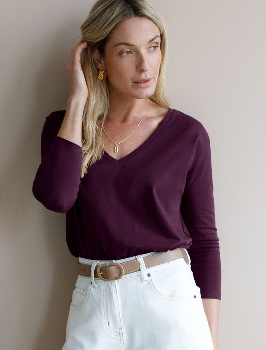 Состав: 92%Хлопок 8%ПУ Параметры модели на первом фото: Рост 172, бюст 88, талия 64, бедра 88Джемпер с длинными рукавами и глубоким V-образным вырезом сшит из премиального хлопка. Однотонная хлопковая модель свободного кроя хорошо поддерживает комфортный для тела микроклимат. Благодаря вплетению эластановых волокон вещь хорошо сохраняет форму.