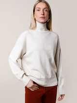 Джемпер свободного объёма из стёганой ткани. Горловина на молнии с окантовкой из экокожи. Манжеты и низ джемпера на резинке. По бокам расположены карманы.
