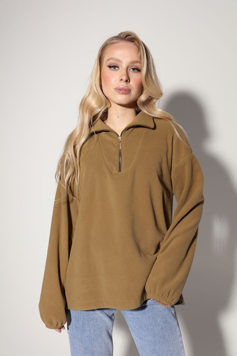 Лёгкий  флисовый джемпер оверсайз в спортивном стиле с молнией на горловине. Застежка - замок на молнии у воротника позволяет легко надевать и снимать джемпер, при этом создавая стильный и современный образ. Рост модели на фото - 170 см. Размер на  модели – 44.