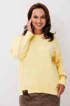 Джемпер прямого силуэта из трикотажного полотна с фигурным низом. Горловина цельнокроеная стойка. Рукав со спущенной линией плеча, удлиненный. Джемпер со смещенным боковым швом.