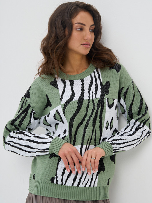 Джемпер NewVay 7242-40267 шалфей/чёрный/белый