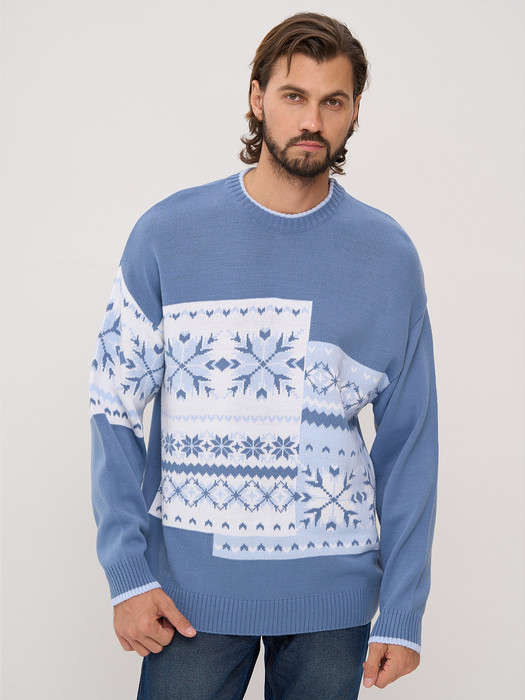 Совместные покупки Каменск-Уральский Мужская одежда Джемперы, свитеры — Джемпер NewVay 9232-99020 зимнее утро/голубой/белый