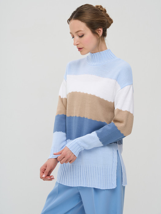 Джемпер NewVay 9242-94057 голубой/зимнее утро/латте/белый