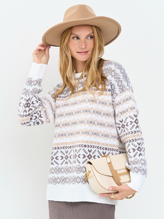 Джемпер NewVay 9242-94183 белый/тёплый серо-коричневый/латте