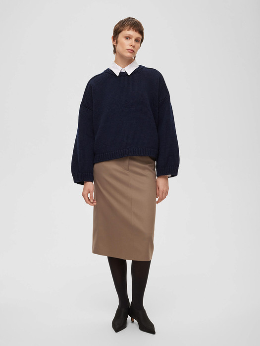 Джемпер с цельным плечом крупной вязки, темно-синий
