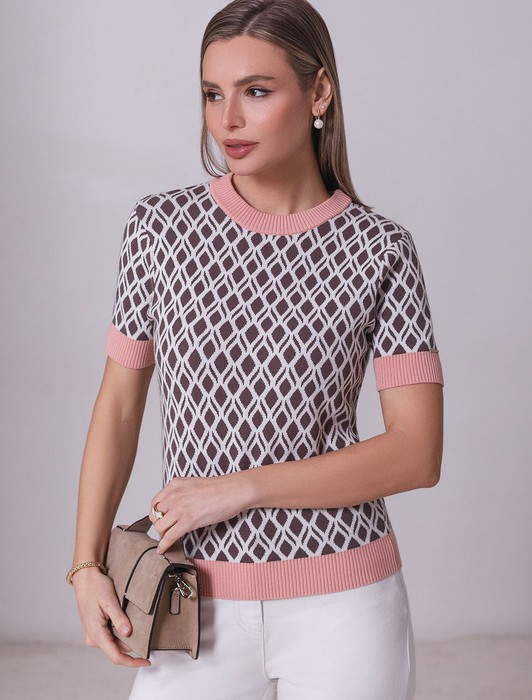 — Джемпер с коротким рукавом жаккардовой вязки с принтом ромб