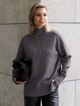 Джемпер из мягкого вискозного трикотажного полотна с люрексовой нитью, свободного силуэта со спущенной линией плеча. Горловина мягкой V-образной формы, рукав длинный, по низу присобран на манжеты из основной ткани, которые украшены тремя декоративными пуговицами. Низ джемпера оформлен притачной планкой из основной ткани.