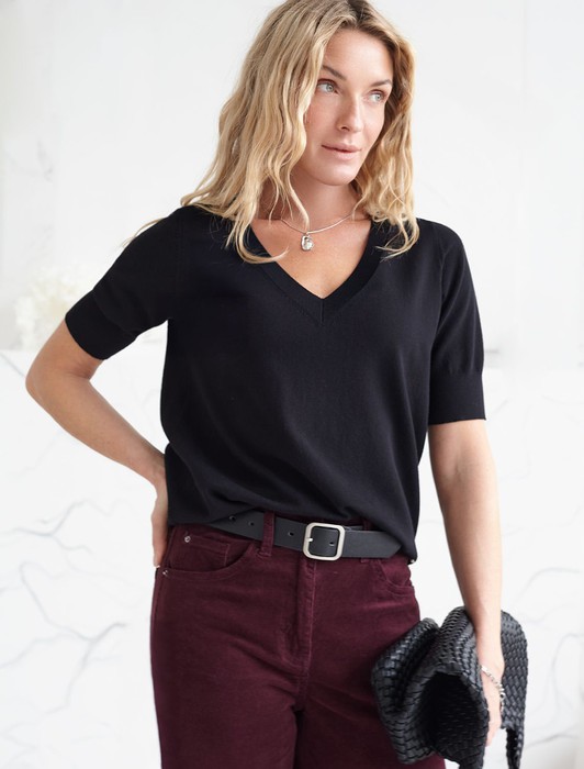 Состав: 83%Вис 17%ПА Плотность: 12 GG Параметры модели на первом фото: Рост 170, бюст 83, талия 64, бедра 88 Размер товара на первом фото: 42Джемпер тонкой вязки выполнен из вискозы с нейлоном. Модель с V-вырезом свободного силуэта. Мягкая очень приятная к коже пряжа не колется, хорошо держит форму и гарантирует комфорт во время носки в течение всего дня. Изделие дополнено фирменным металлическим логотипом бренда.