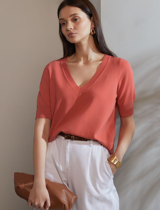 Состав: 83%Вис 17%ПА Плотность: 12 GG Параметры модели на первом фото: Рост 170, бюст 83, талия 64, бедра 88 Размер товара на первом фото: 42Джемпер тонкой вязки выполнен из вискозы с нейлоном. Модель с V-вырезом свободного силуэта. Мягкая очень приятная к коже пряжа не колется, хорошо держит форму и гарантирует комфорт во время носки в течение всего дня. Изделие дополнено фирменным металлическим логотипом бренда.