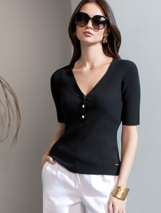 Состав: 83%Вис 17%ПА Плотность: 12 GG Параметры модели на первом фото: Рост 172, бюст 88, талия 64, бедра 88 Размер товара на первом фото: 42Джемпер тонкой вязки из вискозы с нейлоном. Для производства изделия использована пряжа сердечникового прядения — когда нейлоновая нить (основа) обвивается вискозой. Вискоза обеспечивает приятную тактильность и гигроскопичность, а нейлон предотвращает растяжение и повышает устойчивость к пилингуемости. Модель с V- вырезом прилегающего силуэта дополнена золотистыми пуговицами. Изделие дополнено фирменным металлическим логотипом бренда.