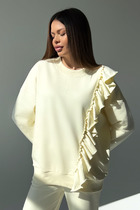 27.03 Vilatte Лонгслив облегающий из фактурного трикотажа в рубчик с круглым вы