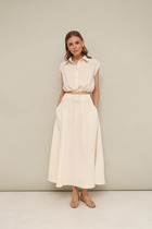 Универсальная длина позволяет сочетать повседневную юбку с разной обувью — от высоких сапог до обуви на плоском ходу, что делает ее отличным выбором для осени и позднего лета.