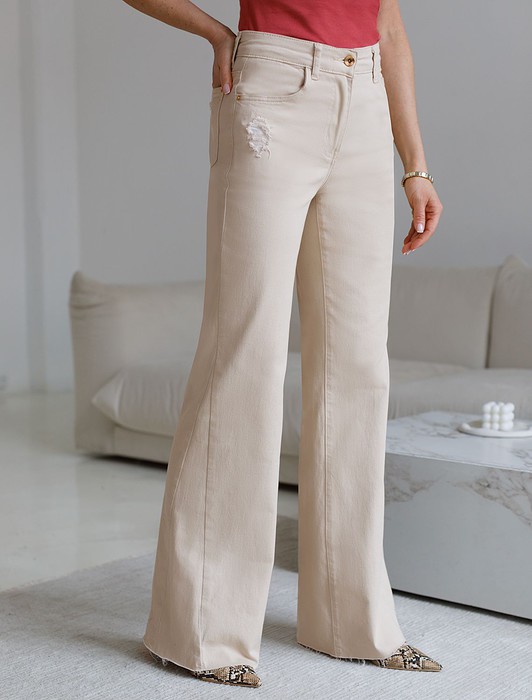 Совместные покупки Каменск-Уральский Женская одежда Костюмы, комплекты — Джинсы клеш с прорезями и с необработанным краем из эластичного денима средней п