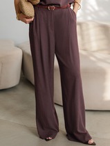 Свободные брюки палаццо на эластичном поясе изо льна с вискозой
