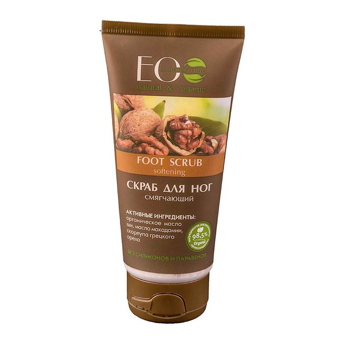 Скраб для ног содержит более 97% ингредиентов растительного происхождения. Органическое масло ши питает и смягчает кожу стоп. Масло макадамии увлажняет и восстанавливает. Скорлупа грецкого ореха нежно отшелушивает, делая кожу нежной и гладкой. Не содержит парабенов и силиконов.